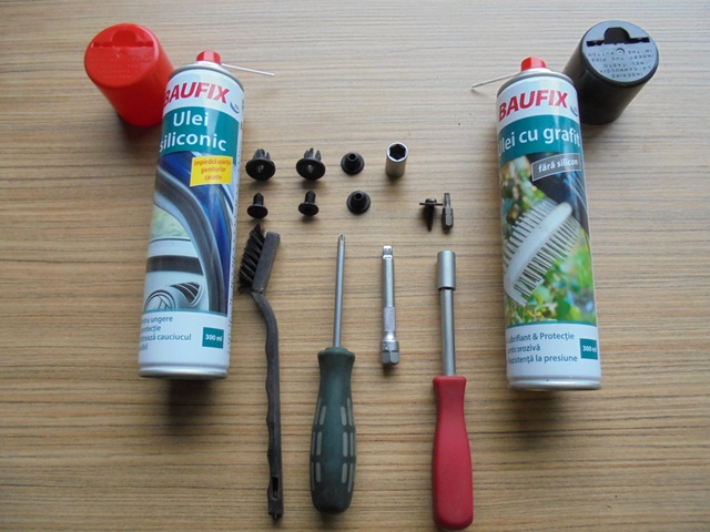 -se curate elementele demontate si se protejeaza cu ulei siliconic (cele de PVC) si ulei cu grafit elementele metalice(foto 7);