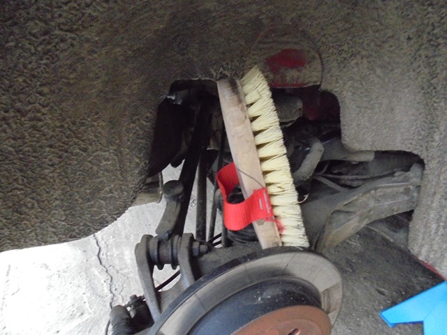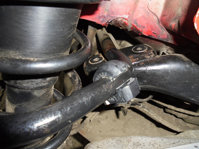 -dupa ce ati identificat bucsile(foto 8), incepeti prin demontarea semi-colierului metalic care fixeaza bucsa pe bara de torsiune; se foloseste cheie inelara dreapta sau cu cot de 13; suruburile sunt de M8, scurte, avand lungimea filetului de 12 mm, dar pozitia de lucru a inelarei este mai dificila(foto 9);