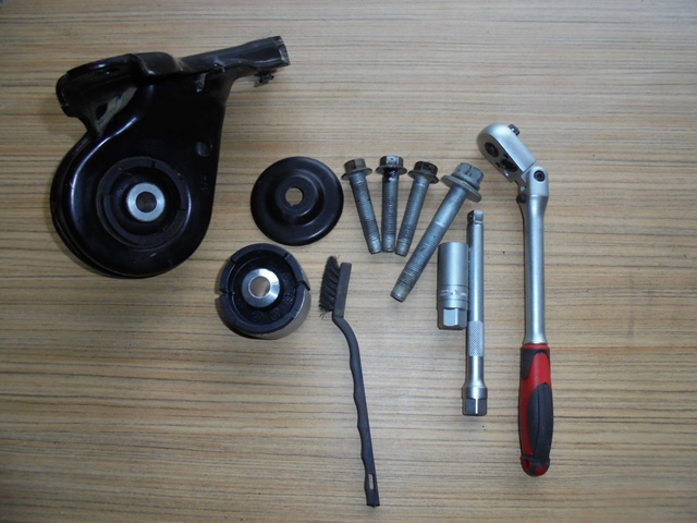 -se curate elementele demontate si se verifica starea bucsilor demontatea( eu le aveam cumparate fiind pregatit pentru schimb); starea celor doua bucsi la 115.000 km rulaj este buna;