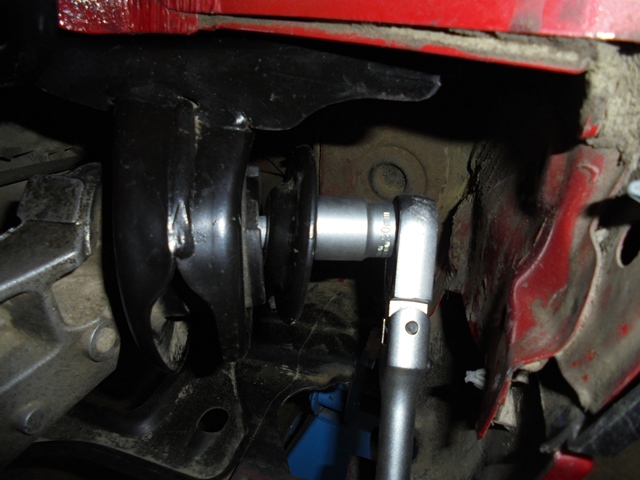 -se continua demontartea surubului si a saibei de presiune, pana la scoaterea din articulatie prin folosirea clichetului + tubulara(foto 17);