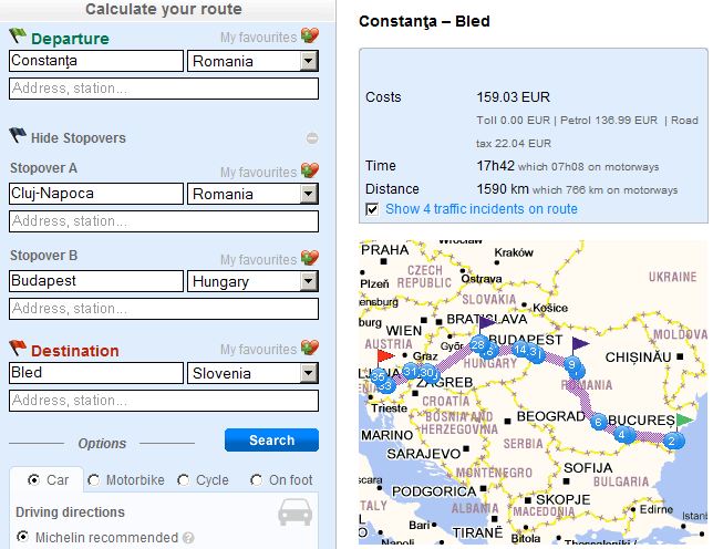 Total: Bucuresti -Bled = 1428 km