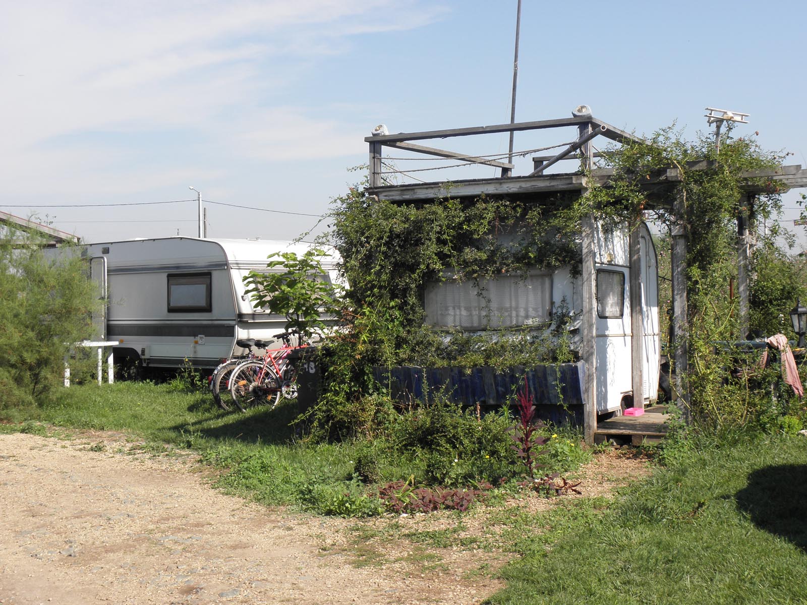 Toate rulotele de 2/3 pers au la intrare cate 2/3 scaune cu o masa si o umbrela ... romantic ;)