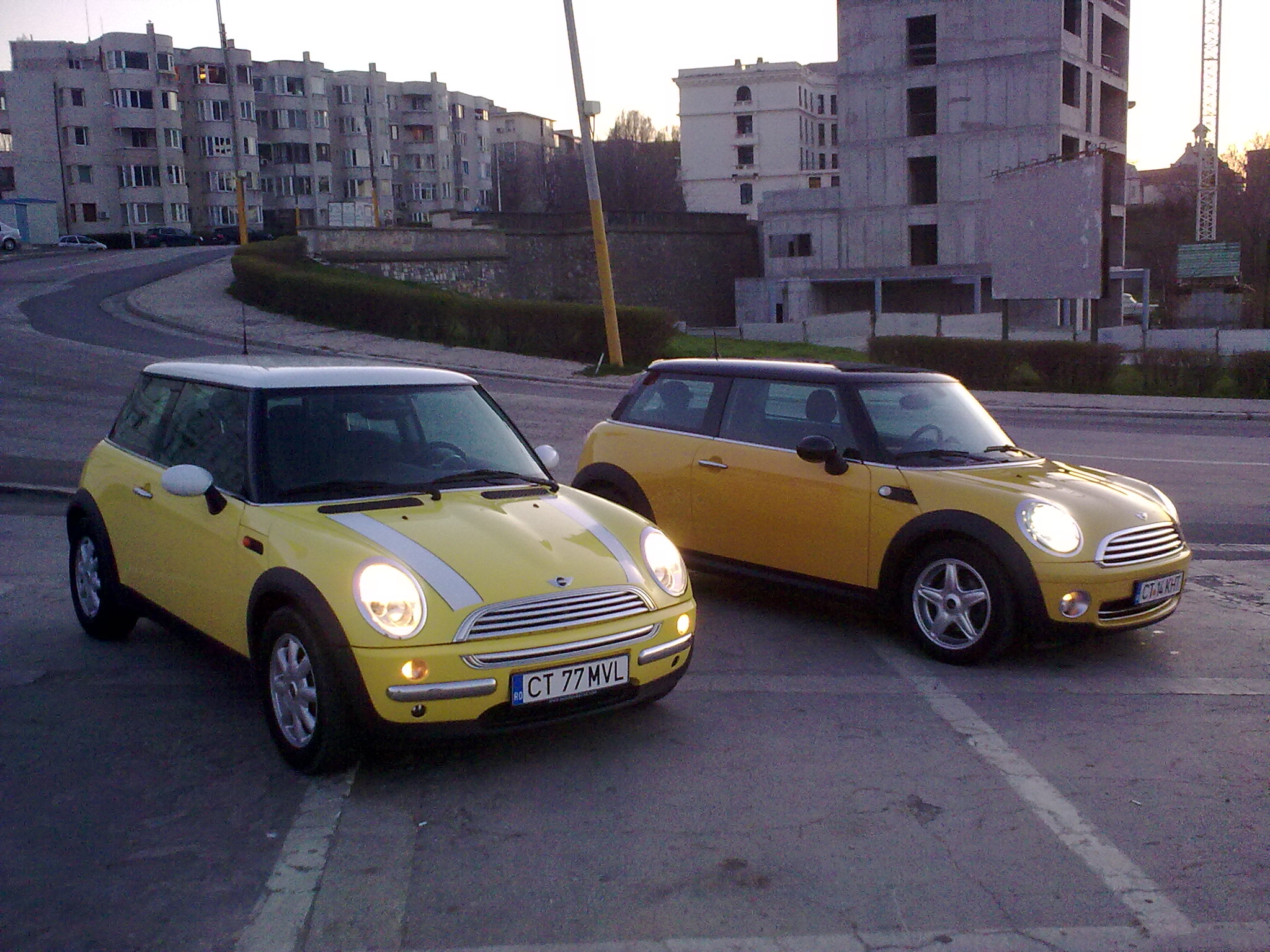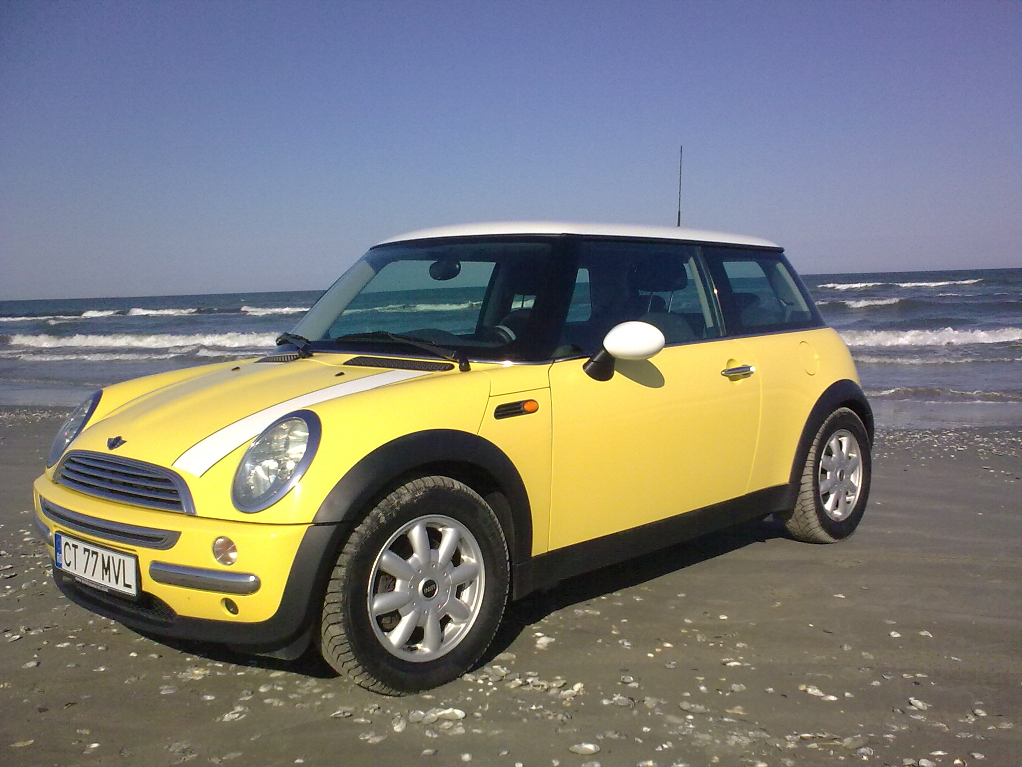 .Cam de o luna si jumatate v-am descoperit comunitatea si ma bucur ca am facut-o,deoarece m-a ajutat mult in achizitionarea primului meu MINI.Si pentru ca este primul mi-am cumparat un timid MINI ONE galbui cu niste dungi albe puse cam aiurea(dupa cum mi-a spus si cel care m-a ajutat cel mai mult cu sfaturi- Khuti).Luni l-am cumparat tocmai de la Brasov(eu fiind din Constanta) si azi l-am botezat cu numere de CT si apoi l-am scos la o sesiune foto pentru a vi-l prezenta.Sper sa ne primiti si pe noi in haita .MINI -ul meu este din 2004 si are 90 CP si 96.000 km parcursi.
