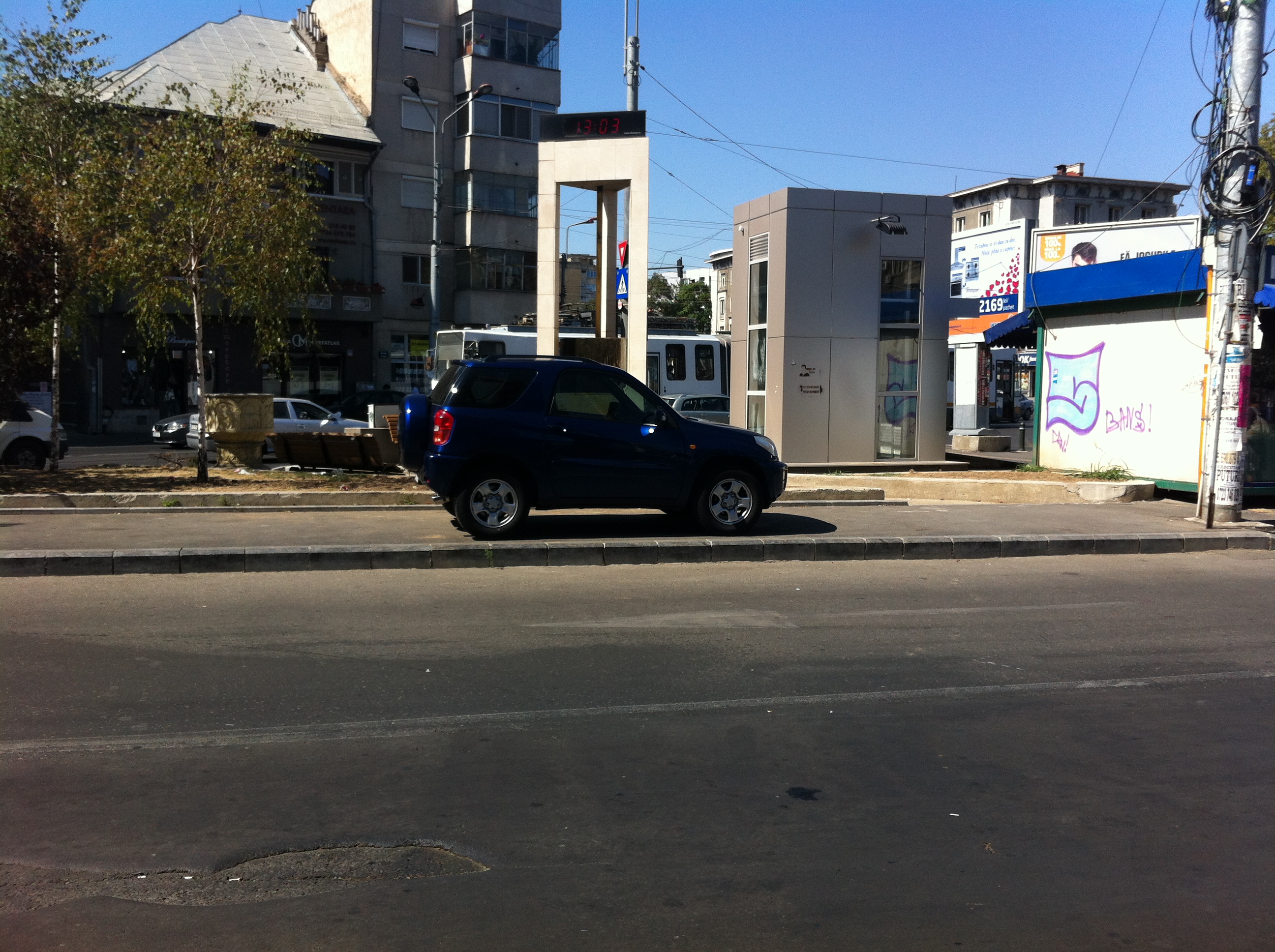 Razvan , dupa cum vad este un trotuar neterninat(s-a turnat numai balast stabilizat si asteapta asfaltul),sper ca nu ti-ai luat Toyota numai ca sa invingi in disputa cu bordura si sa trimiti pietonii pe carosabil.Sper ca nu ai in vedere chestia aia cu:"Pietoni, urcati-va pe garduri",si marimea rotilor si garda la sol nu-ti va modifica felul de a percepe strada.