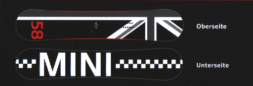 The German site BIGBLOGG.MOTORING has posted that, through December 15, 2010, MINI is taking orders for 300 MINI Snowboards developed by Burton in association with MINI. The boards will come in two sizes - 153cm and 158cm. No information is given on whether these can be ordered in the USA, but, they can be ordered through MINI customer service in Germany(telephone number 01802-64 64 66 or by email at [email protected]).