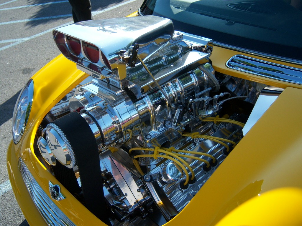 poate te ajuta inspiratia asta! ei bine... e exagerat, se vede! sa pui motor V carburator alea alea pe un BIJU de MINI! hmmm a bitt strange! :roll: