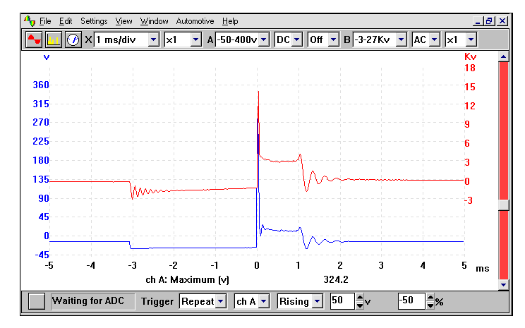 Osciloscopul este de baza pentru verificarea formelor semnalelor, durata si simultaneitatea semnalelor. Dupa cum vezi in foto semnalul albastru este pe joasa tensiune, iar pe inalta tensiune( rosu) ajunge la 12-13 KV. Valori scazute sau semnale decalate indica nefunctionarea bobinei sau generatorul de semnal. Pentru generare semnal, ECU are nevoie de informatii de la Crankshaft Position Sensor(CPS) si Camshaft Position Senzor pentru a da semnal corespunzator pe infasurarea primara a bobinelor. Obligatoriu sa-ti conecteze osciloscop pe aprindere, daca nu rezolva din injectie problema