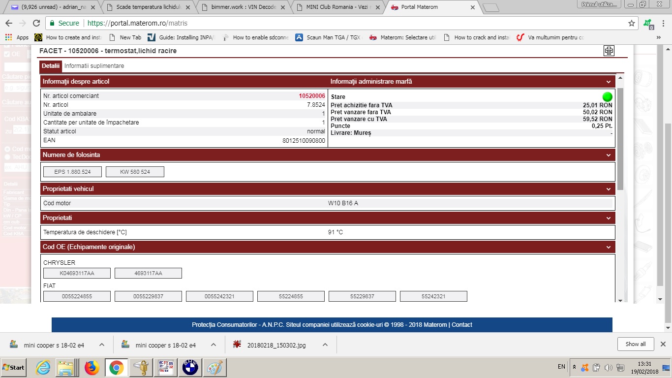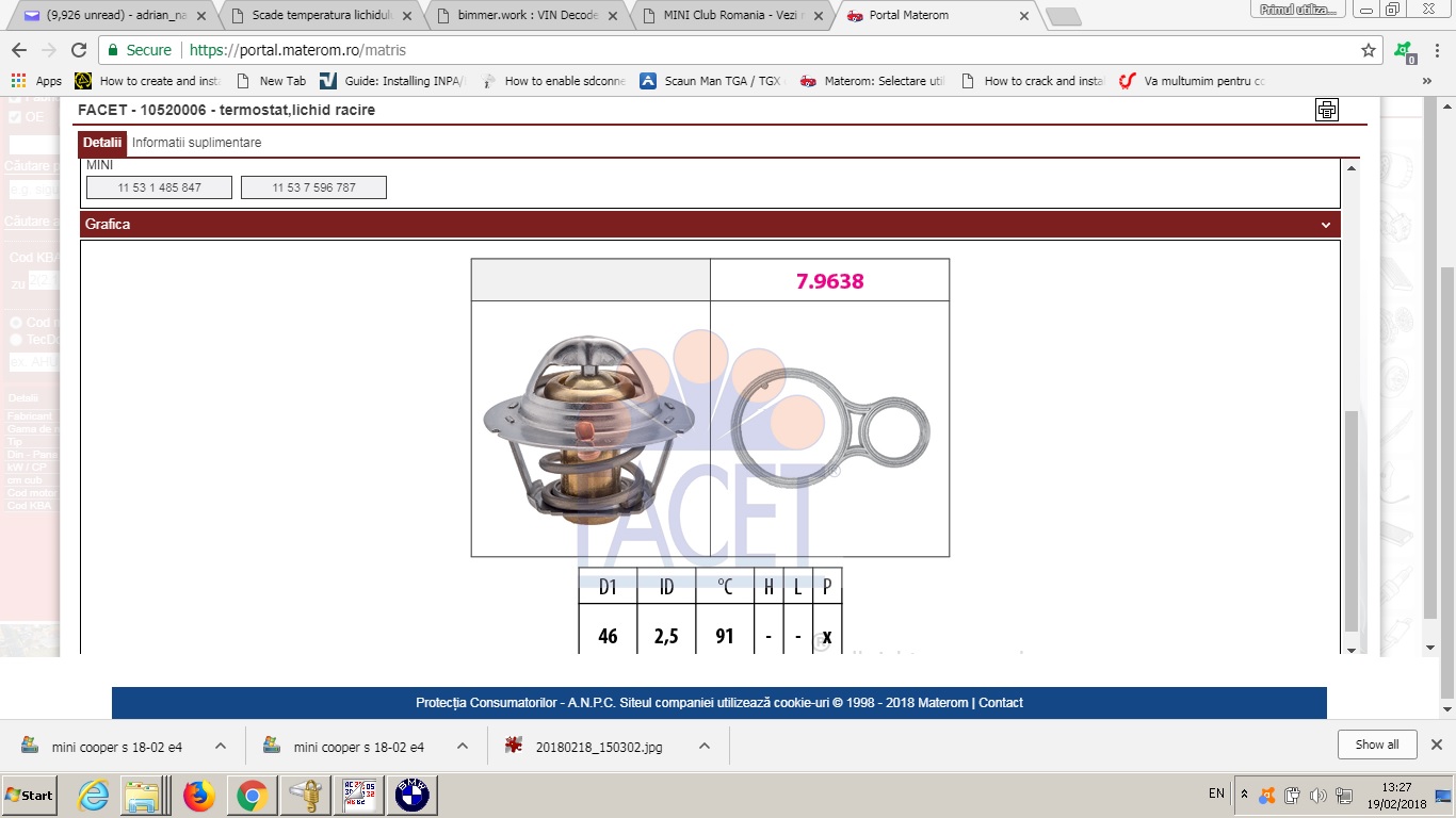 eu am dat 10 euro(TVA inclus) pe el si ca sa "ma dau mare" nu e de la FACET ci de la EPS (nu stiu diferenta intre ele) :lol: :lol: :lol: :lol: deci tot mai scump in RO :D :lol: :lol: pt ca voiam sa stiu daca "vinovatul" este termostatul si nu voiam sa "merg asa" ... voi vedea zilele urmatoare....