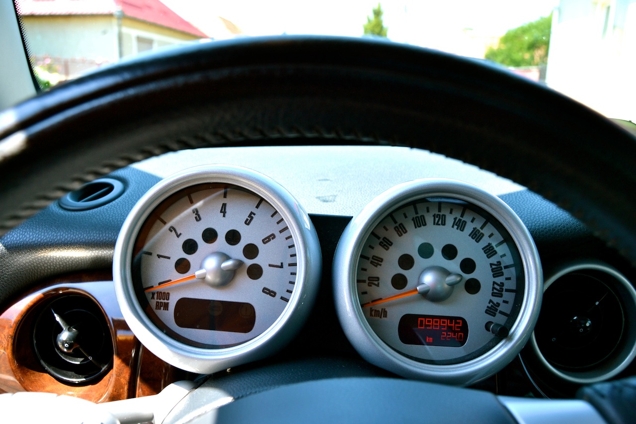 MINI Cooper R50 1.6i Coupe, 116 CP, 100.000 km, 5+1 trepte, fabricatie 03.2003, benzina, Euro 4, Argintiu metalizat cu plafon si oglinzi negre, 6 x airbag, 3 usi, 4 locuri, distributie pe lant, fara accident, varianta full.