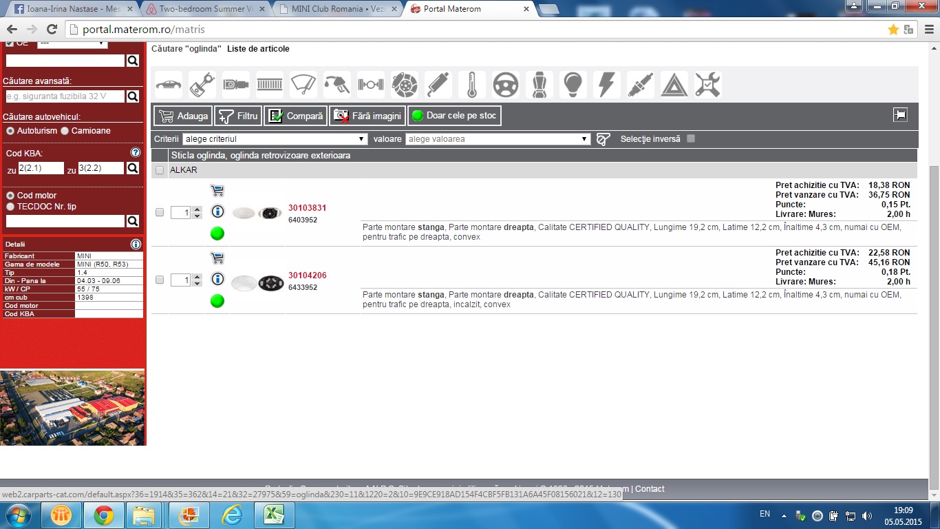 sticla costa 20 Ron pe producator Alkar, se gaseste peste tot.Toata oglinda intre 350-440 Ron stanga si putin mai ieftina dreapta, incalzite si reglabile electric.