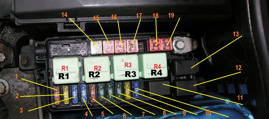 Am identificat circuitele si cu acesta ocazie am facut si o legenda/ diagrama, legenda din interiorul capacului cutiei de sigurante nu prea iti spune multe, mai ales pentru cine nu este in tema/este ceva mai complicat sa identifice circuite. Aici este corespondenta sigurantelor/releelor/circuitelor cu foto din attachment. Legenda este valabila prin analogie si la alte variante de Mini Cooper.