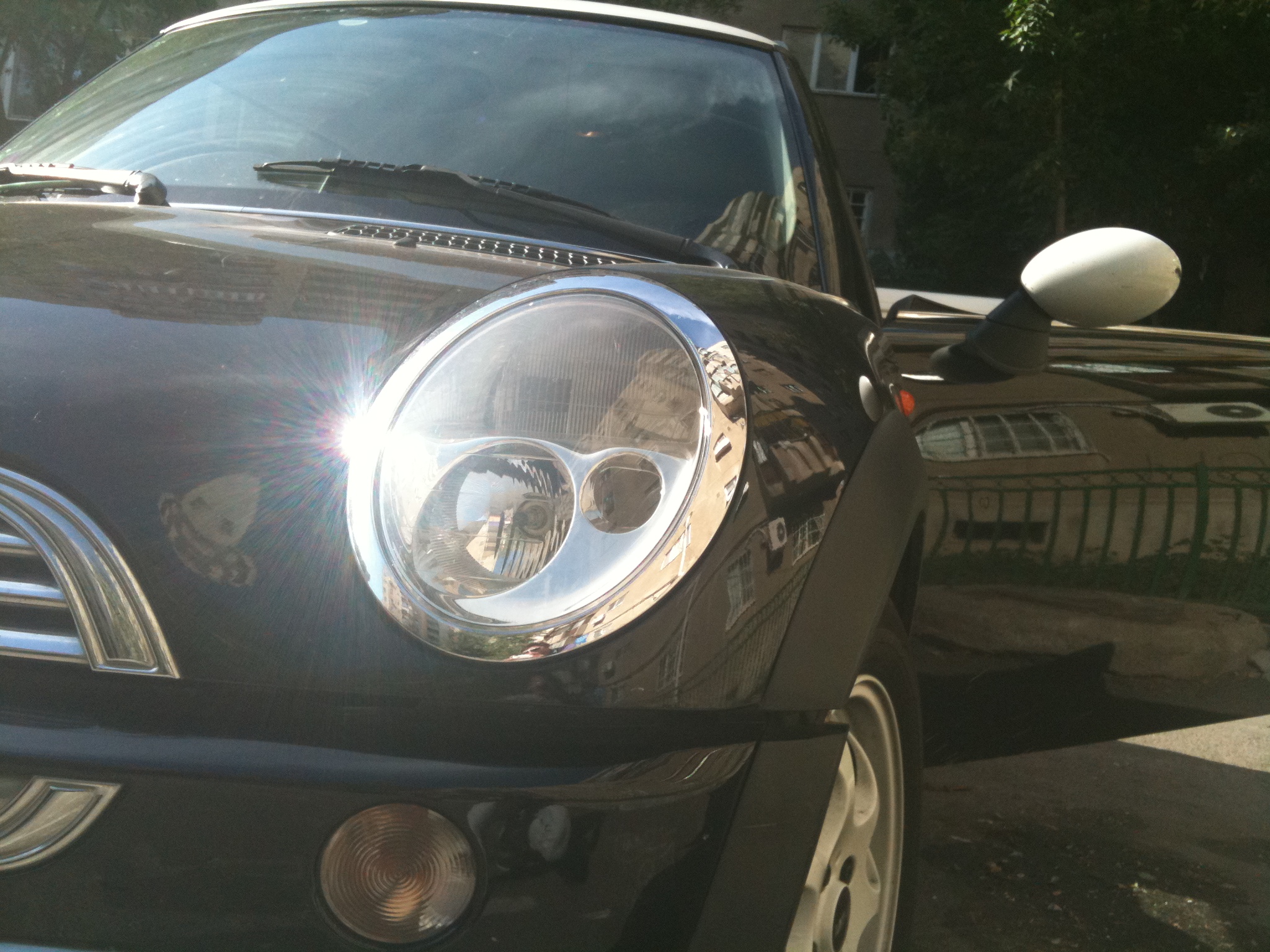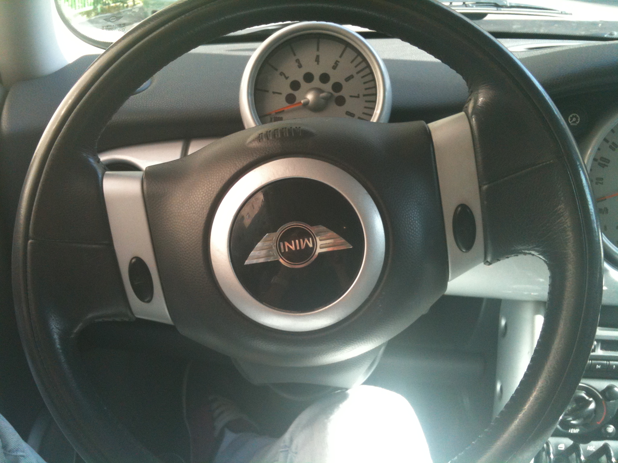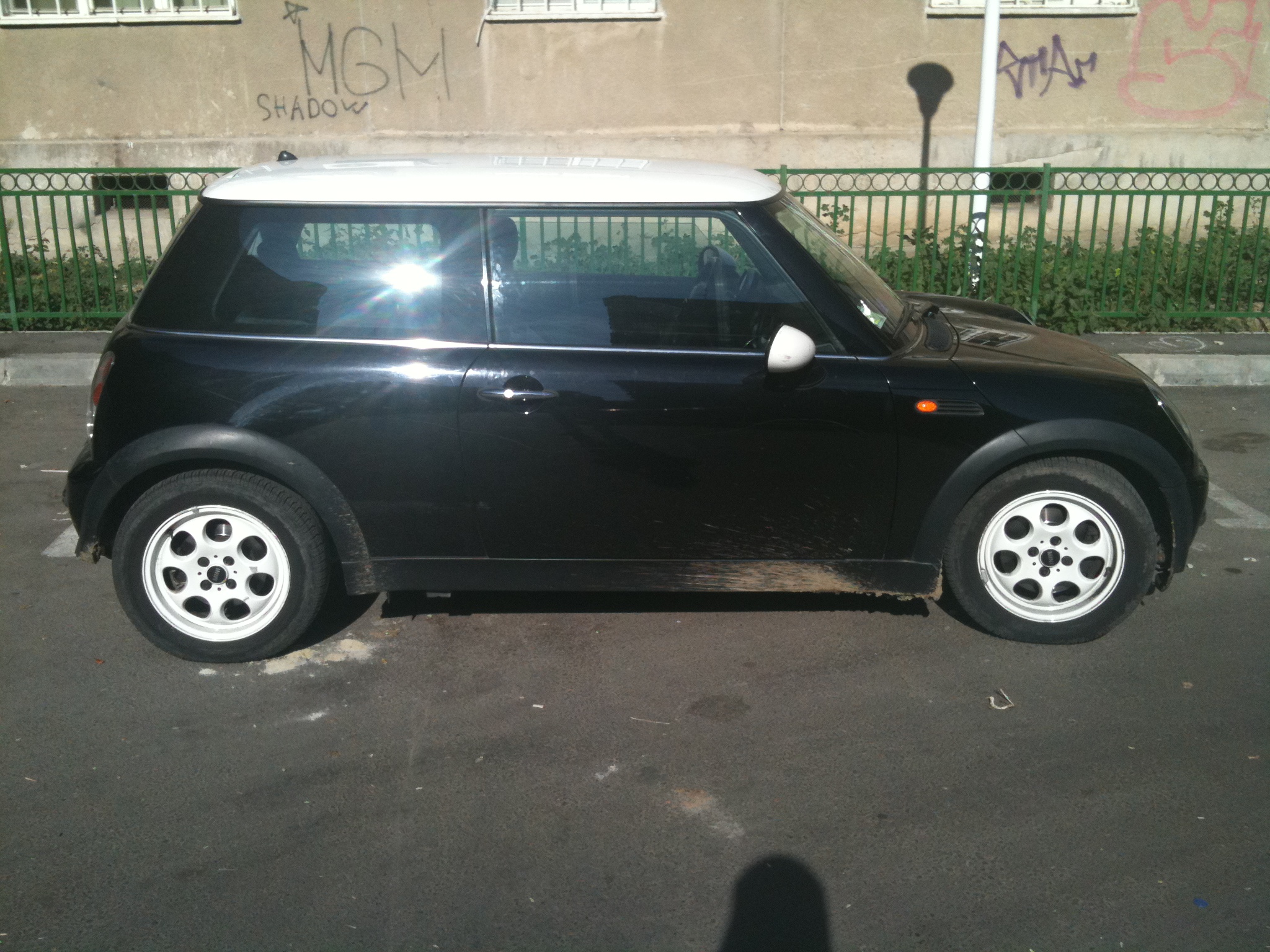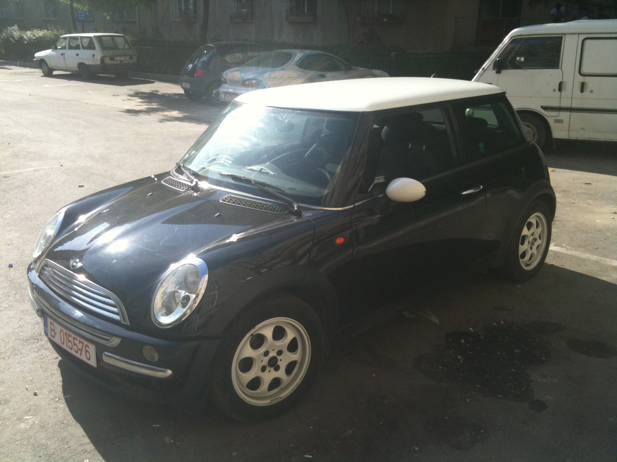 Nume inca nu are,inca ma mai gandesc,poate dupa ce o inmatriculez o sa ii pun si un nume :D MY MINI e negru cu plafon alb,cutie automata,jante 15"( :( ),toba cred ca este modificata de fostul proprietar :twisted: .Oops!am uitat sa precizez:este un MINI COOPER R50 din 2002 :mrgreen: de aici...las pozele sa vorbeasca :lol:
