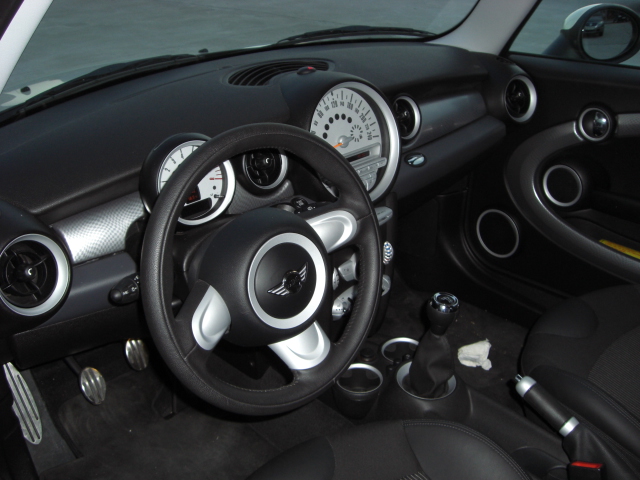 Este cooper S, are 190 caluti (chiptuning), in plus fata de standard are pachet lumini, faruri bixenon, scaune incalzite din pilele si stofa, volan sport.